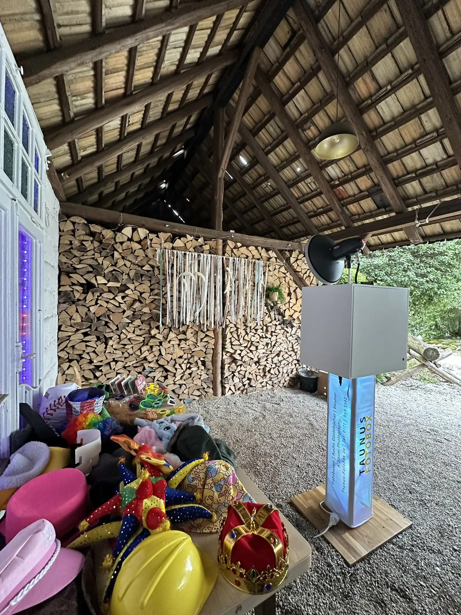 - Eine Kiste mit unzähligen Requisiten, welche verschiedene Masken, Brillen, Perücken, Hüte uvm. beinhaltet